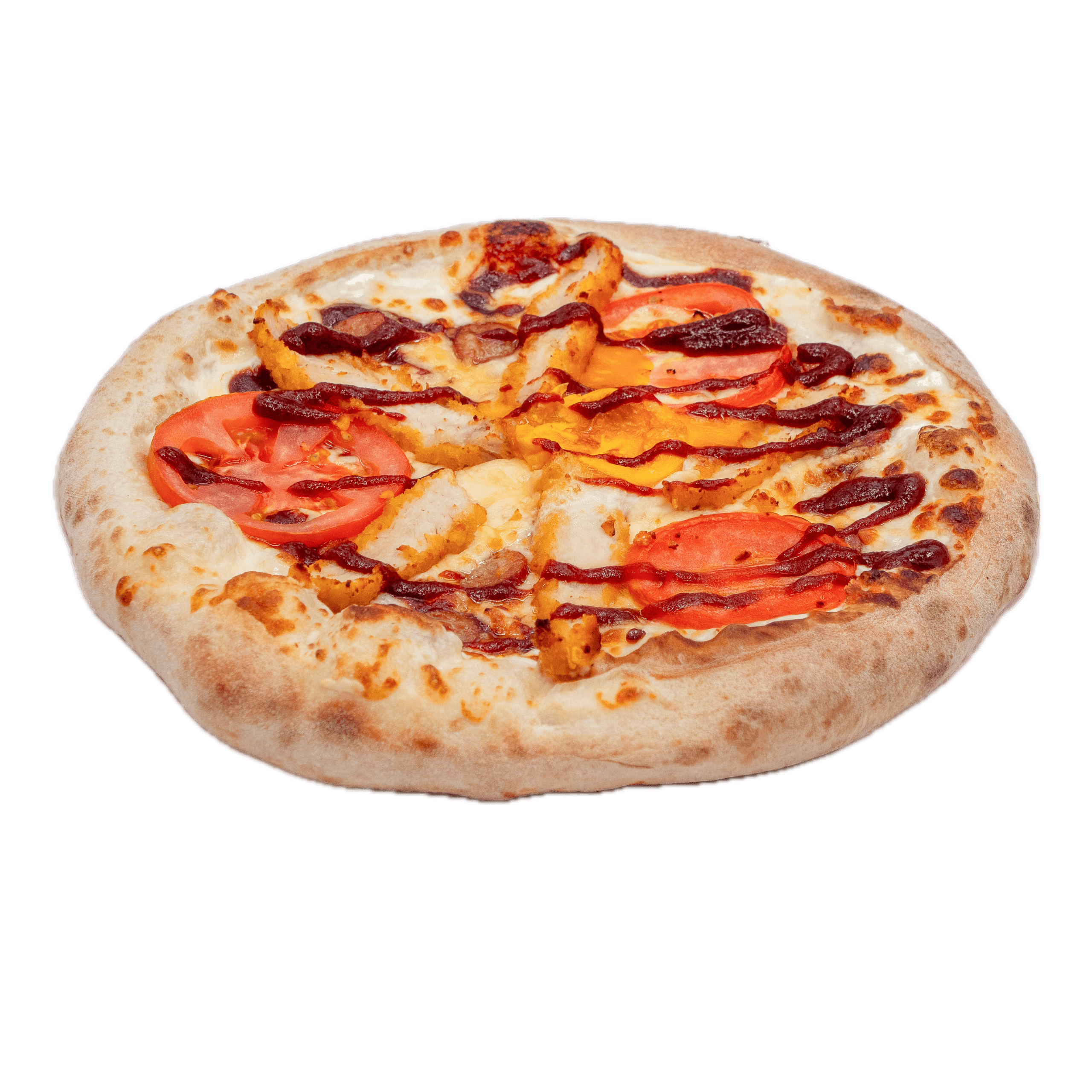 Sauce barbecue, mozzarella, bacon, champignons, pepperoni, poivrons