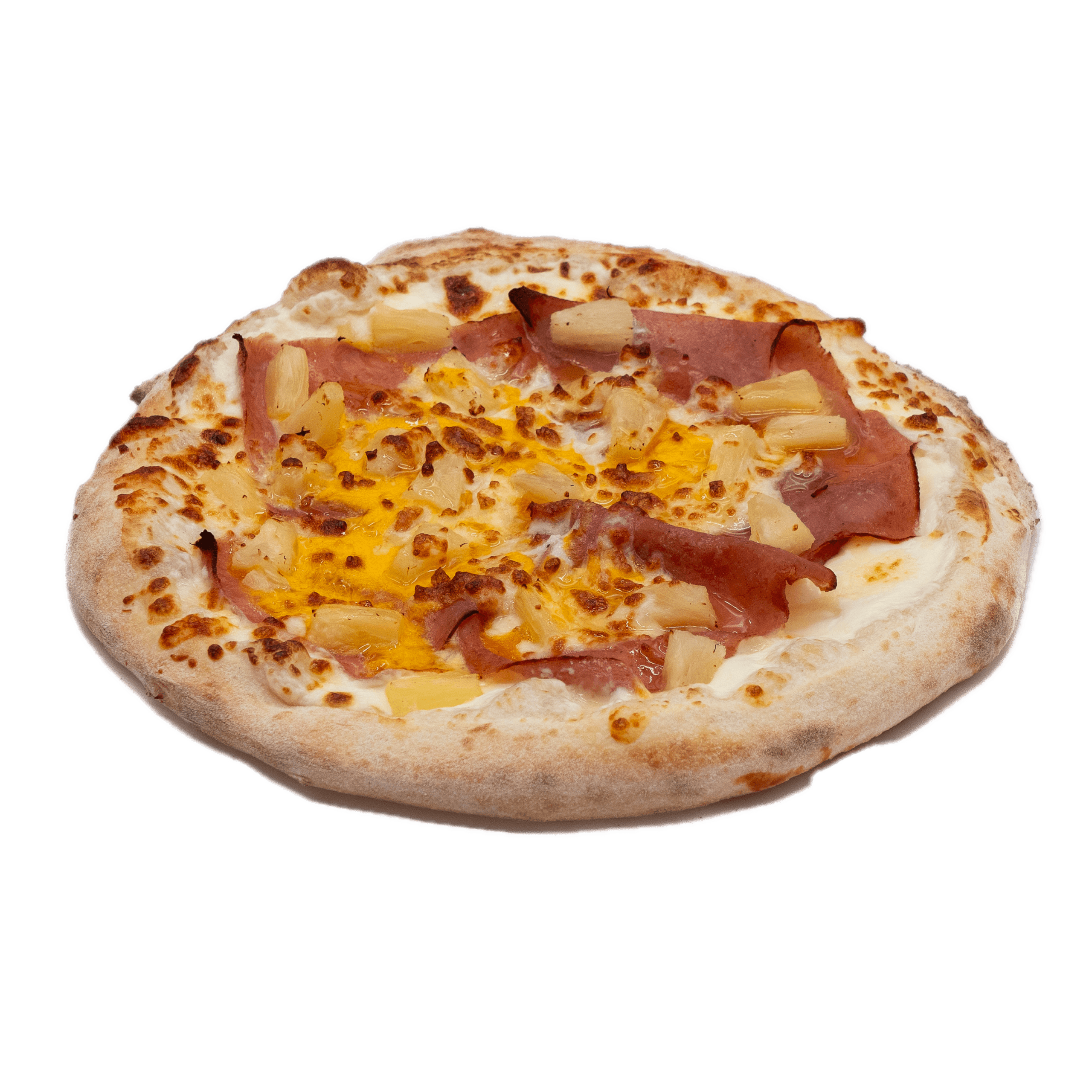 Crème fraîche légère, mozzarella, double jambon, ananas, oeuf